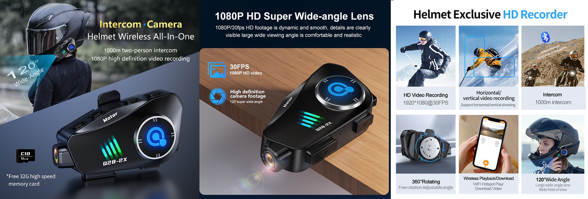 IPX6 Waterproof Noise Reduction Motorcycle Helmet Intercom Wireless Headphone With HD Camera for Rider